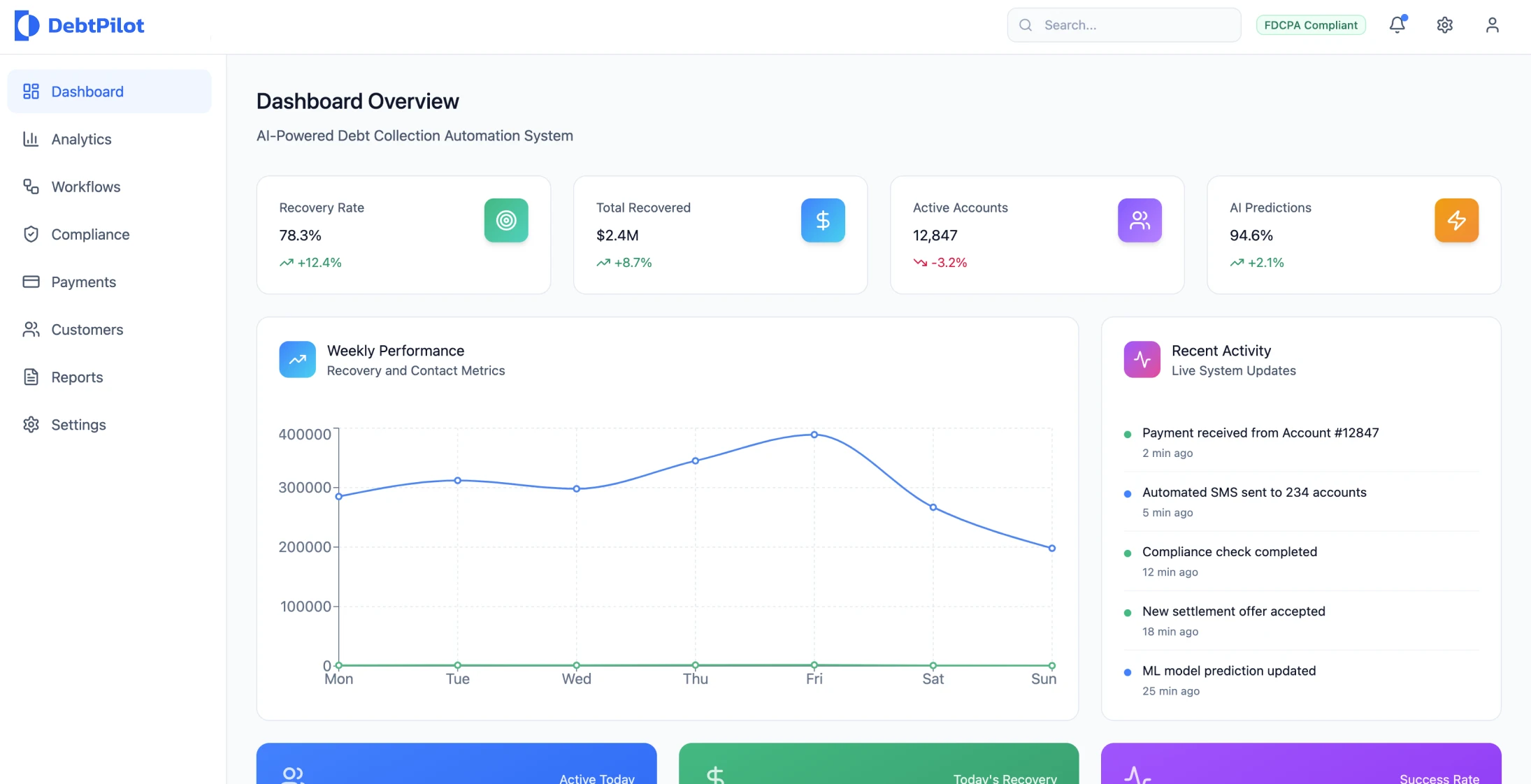 Las empresas financieras tenían dificultades para recuperar deudas, lo que provocaba malas relaciones con los clientes, bajas tasas de éxito y un aumento de los gastos operativos. Implementamos un sistema integral de automatización SaaS que transformó el cobro tradicional de deudas en una solución centrada en el cliente y basada en la inteligencia artificial, lo que permitió aumentar en un 67 % las tasas de recuperación y mejorar drásticamente la satisfacción de los clientes.